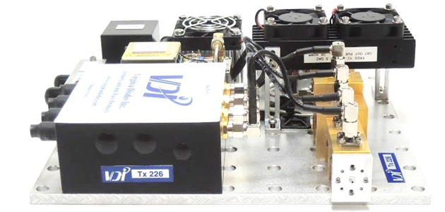 送信システムは高出力または導波管周波数帯域動作用に設計されています。高出力システムはVDIのDシリーズ周波数ダブラー(D52、D102など)を使用して、最大の逓倍器効率と電力処理を実現します。導波管周波数全帯域送信システムはVDIのWRシリーズ周波数ダブラーまたはトリプラーを利用しますが効率は低くなる分、広帯域機能を備えています。