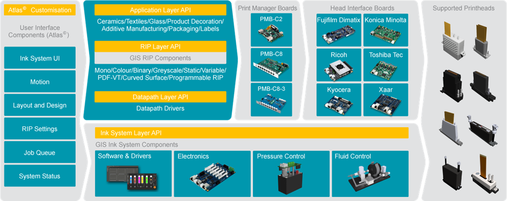 Developed by GIS using the latest Microsoft .NET platforms, Atlas comprises a flexible User Interface Platform (UIP), as well as Machine Control Services (MCS), a powerful server technology for managing the entire printing and sub-system process.